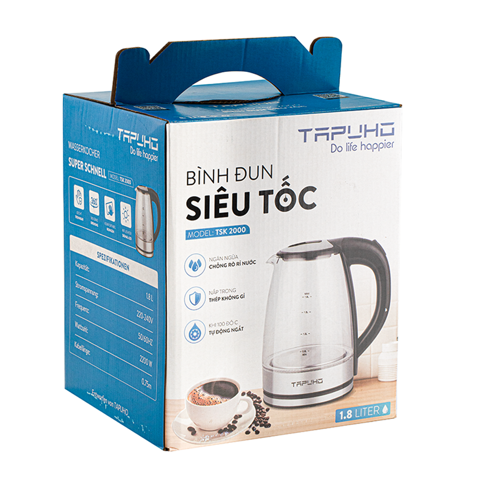 3. Sử dụng nguồn điện 220V-240V, cắm phích vào ổ cắm điện, ấn nút công tắc, đèn sẽ báo sáng trên ấm.