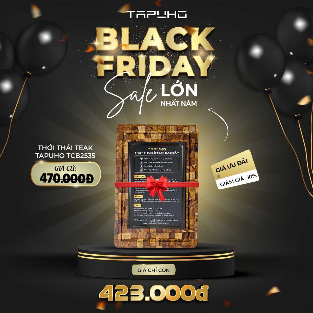 Chào đón chương trình siêu sale lớn nhất năm, Tapuho gửi đến cho các bạn chương trình Black Friday với nhiều ưu đãi cực kỳ hấp dẫn. Thời gian khuyến mại bắt đầu từ ngày 24/11 – 30/11.