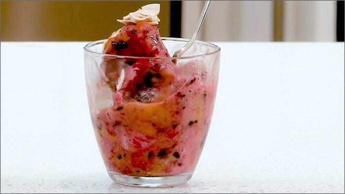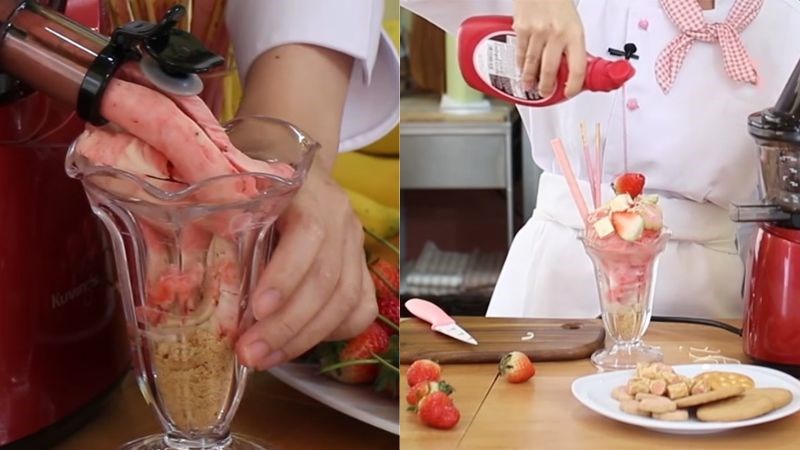 Món kem dâu chuối thơm ngon và dễ làm với máy ép chậm.
