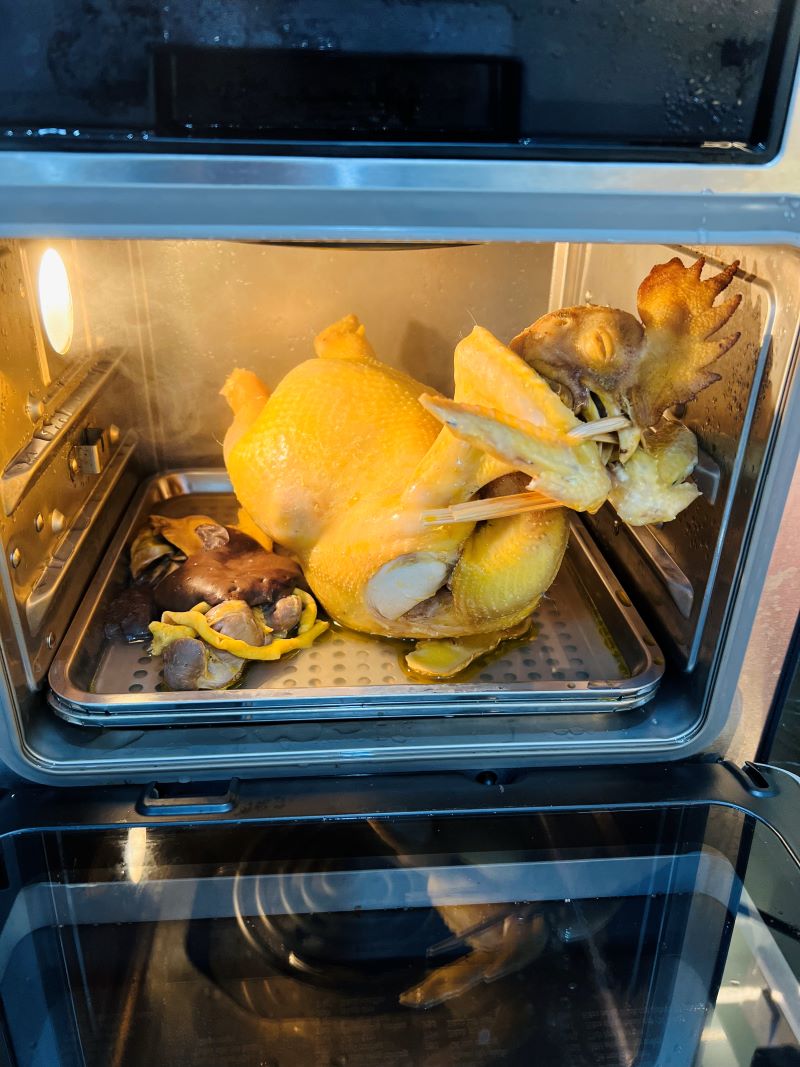 Bước 3: Tiến hành hấp gà bằng nồi chiên hơi nước