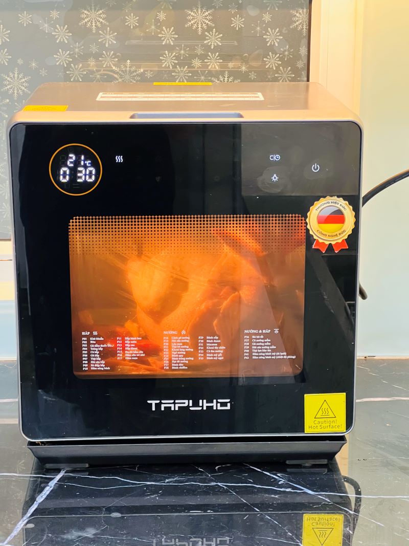 Nồi chiên hơi nước TSF16 của Tapuho có dung tích lớn giúp bạn hấp và quay nguyên con gà dễ dàng.