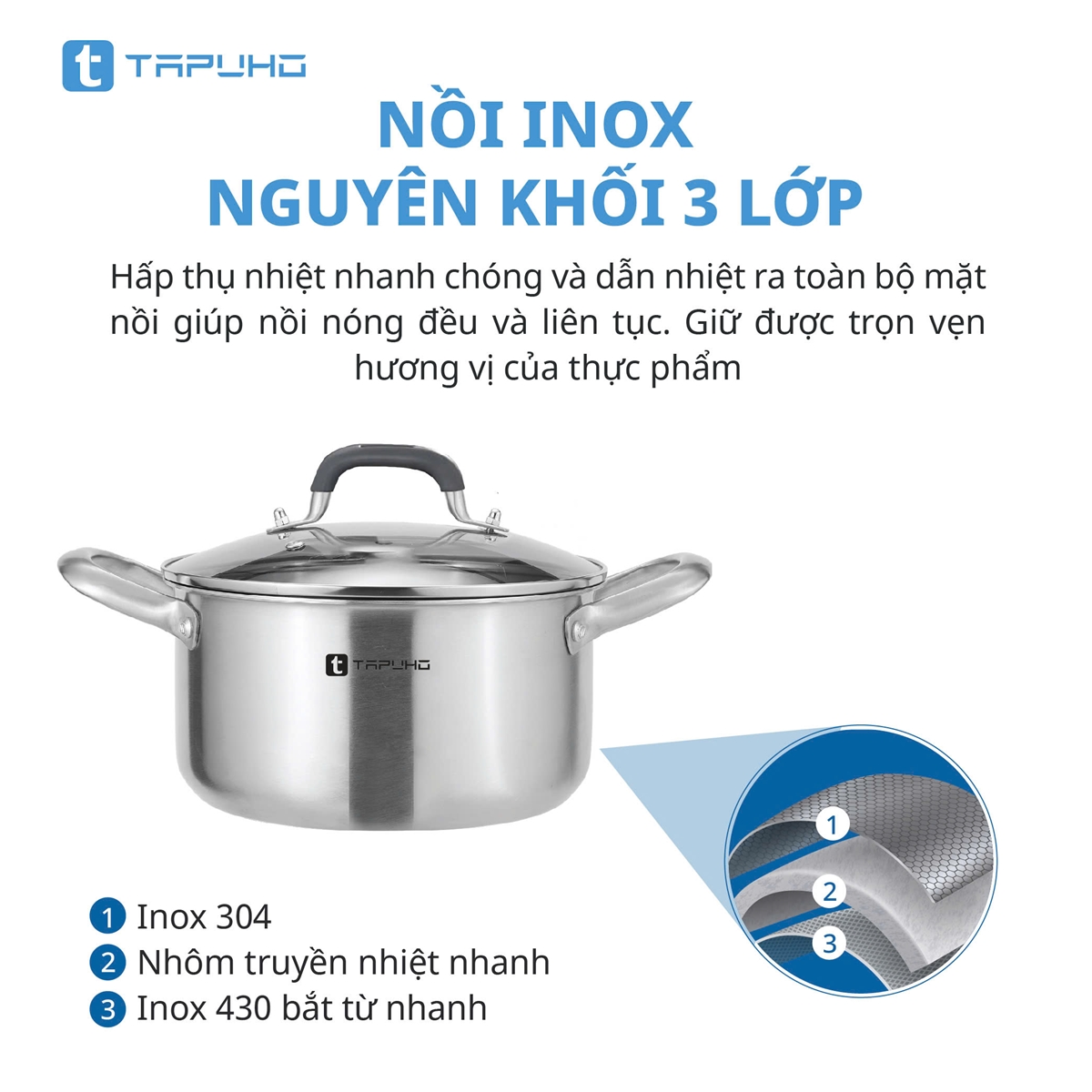 Nồi Inox Cao cấp 3 lớp liền khối TAPUHO TP3739