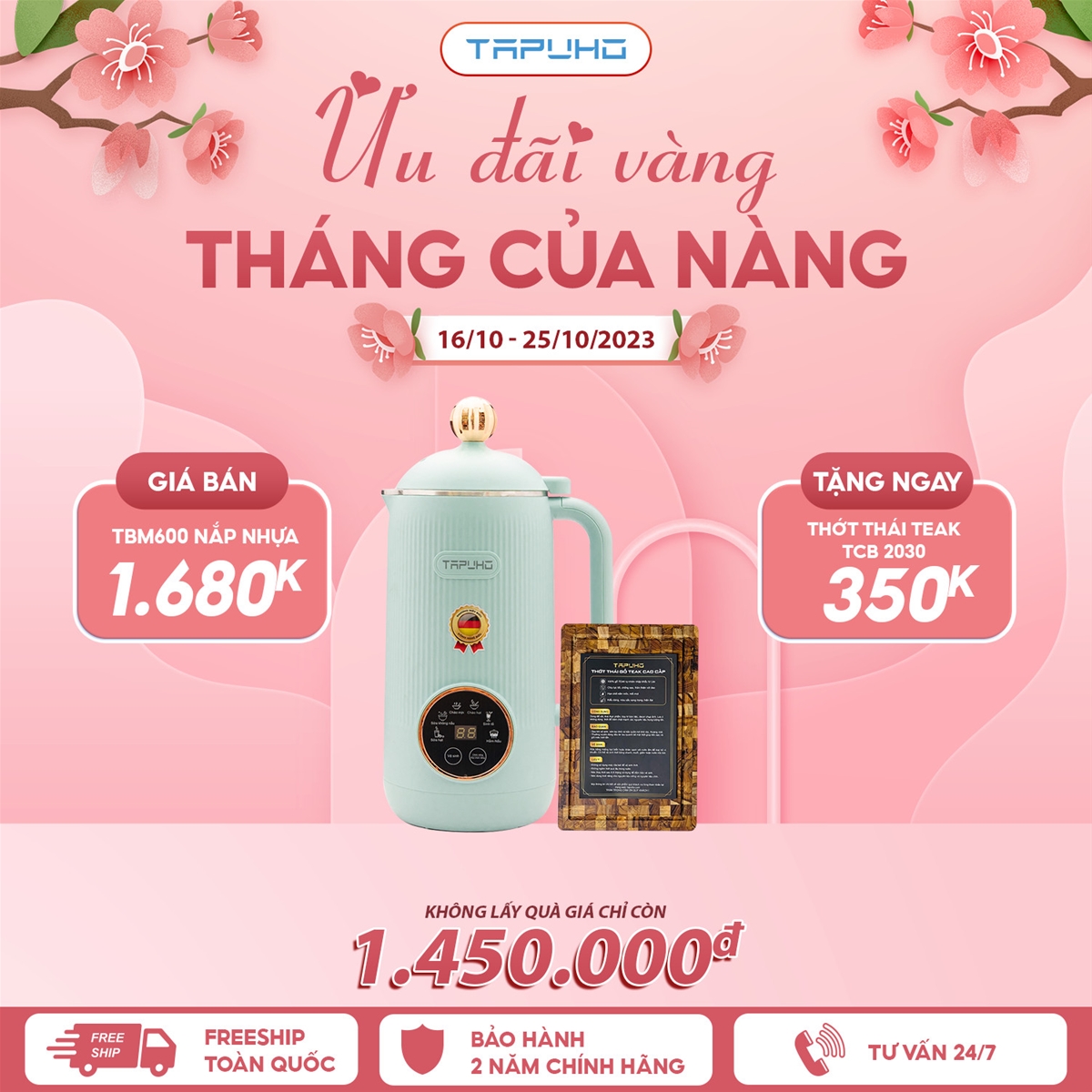 Nhân dịp kỷ niệm 93 năm Ngày Phụ nữ Việt Nam, Tapuho xin gửi đến quý khách hàng chương trình khuyến mại: “Tôn vinh người phụ nữ Việt Nam”. Chương trình được tổ chức như một món quà nhằm tôn vinh vẻ đẹp cùng sự chịu thương chịu khó của các bà, các mẹ và trong cuộc sống gia đình hiện nay.