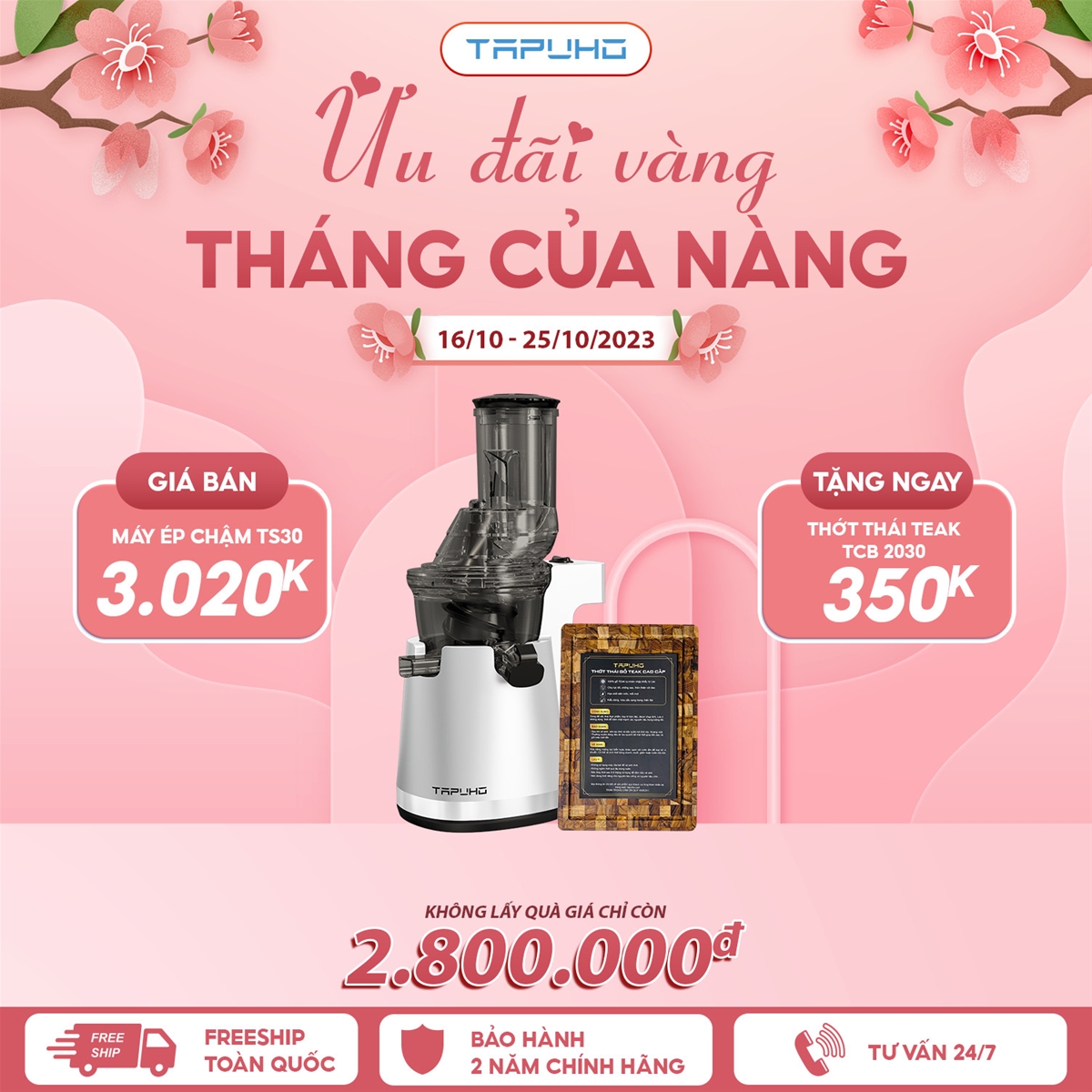 Máy ép chậm TS30: 3.020.000 VNĐ+ quà thớt nhỏ. Hoặc 2.800.000 VNĐ không quà.
