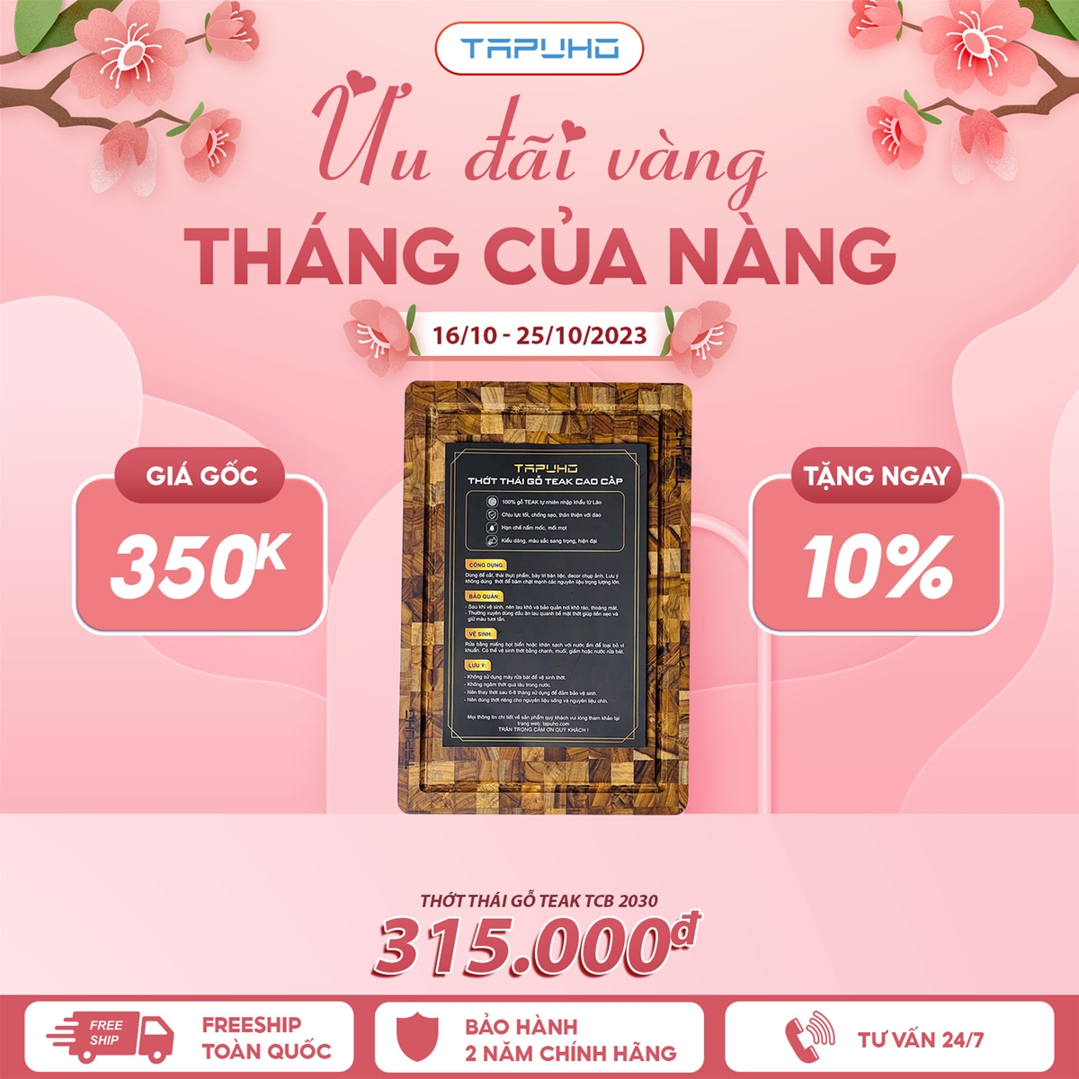 Chi tiết chương trình ưu đãi tháng 10, quý khách hàng vui lòng xem tại: https://tapuho.com/