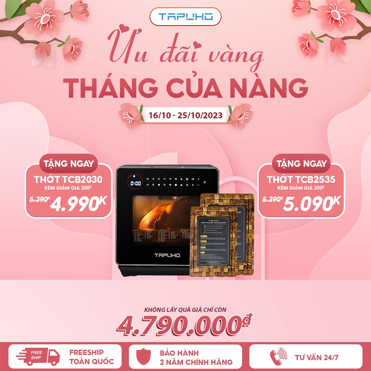 Nồi chiên hơi nước TSF16: 4.990.000 VNĐ + quà thớt to. Hoặc quà 5.090.000 VNĐ + quà thớt nhỏ. Hoặc 4.790.000 không quà.