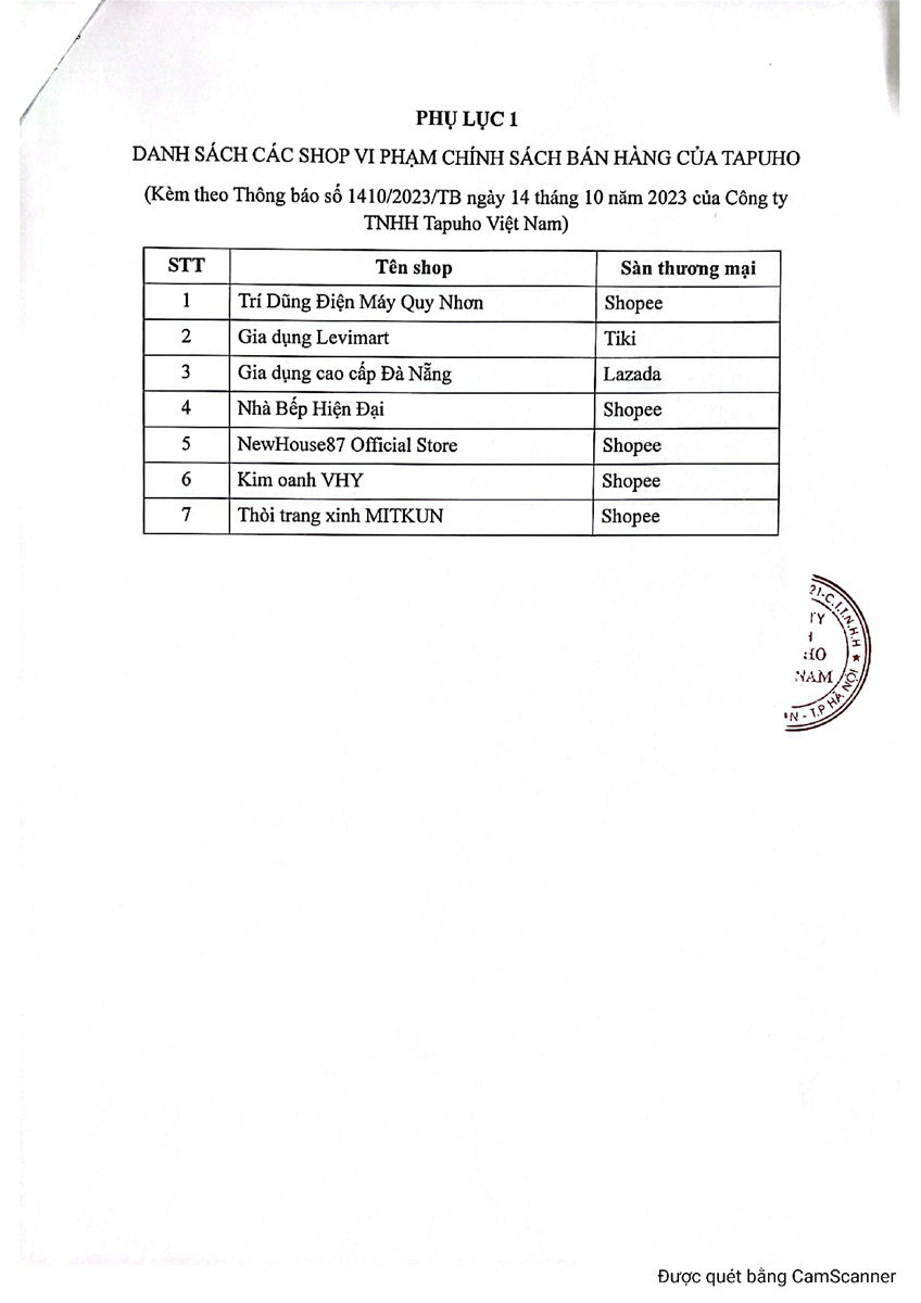 THÔNG BÁO: Chấm dứt bảo hành sản phẩm thương hiệu TAPUHO đối với tất cả các SHOP vi phạm chính sách của TAPUHO